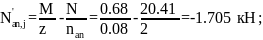 где Nan,j - наибольшее растягивающее усилие в одном ряду анкеров: