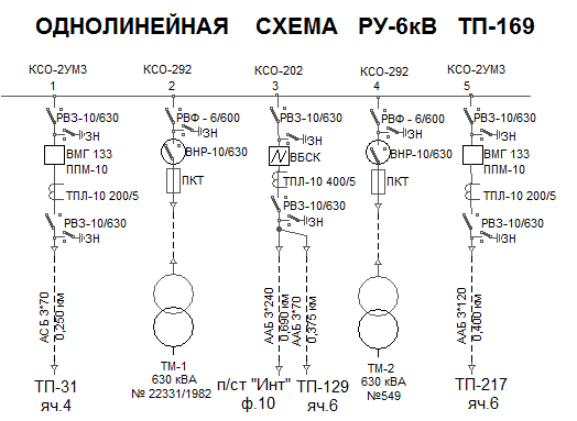 Рисунок А.1 - Однолинейная схема РУ-6 кВ ТП-169 (существующая)