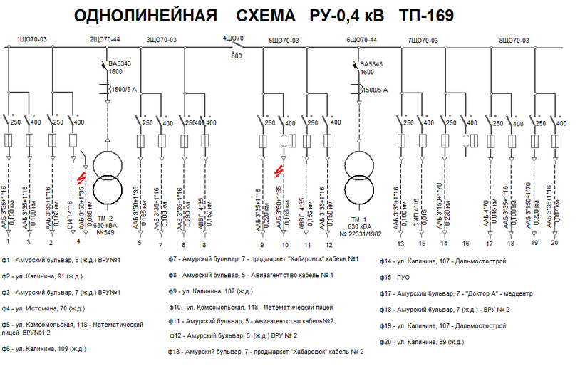 Рисунок Б.1 - Однолинейная схема РУ-0,4 кВ ТП-169 (существующая)