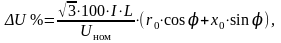 где I – расчетный ток линии, А; L – длина линии, км; cos, sin - соответствующие коэффициенты мощности потребителя; r0, x0 - активное и индуктивное сопротивление кабельной линии, Ом/км; Uном – линейное напряжение в сети, В.