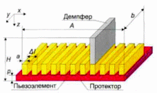 Метод фазированной антенной решетки схож с традиционным ультразвуковым эхо-импульсным методом, но более усовершенствованный и мощный. Данный метод позволяет контролировать наиболее сложные детали без применения дорогостоящих методов, таких как рентгенографический, магнитопорошковый или капиллярный методы. На рисунке 1.2 изображена схема преобразователя фазированной решетки, который представляет собой множество пьезоэлектрических элементов, заключенных в одном датчике. Протектор, находящийся внутри преобразователя, служит для защиты пьезоэлемента от механических повреждений, защиты от коррозионного воздействия и для снабжения акустического контакта. Протекторы выбирают из условий, что они должны быть сделаны из материалов, характеризующиеся высокой износостойкостью, малым затуханием УЗК и высокой скоростью звука. Демпфер предназначен для защиты пьезоэлемента от механических повреждений и для гашения паразитных колебаний. Демпфер производят из материала с большим поглощением УЗ, чтобы отраженная от верхней грани волна не возвращалась к пьезоэлементу и не вызывала помех. Для обеспечения высокой работоспособности необходимо, что бы демпфер обеспечивал затухание паразитных сигналов не менее 60–80 дБ [4]. Генератор осуществляет контроль всех элементов, формирующих лучи и выдает амплитудный сигнал в режиме реального времени. Угол излучения фазированного датчика контролируется с помощью специальной программы и охватывает достаточно большой объем исследуемой детали без физического перемещения самого датчика. Такой подход снимает необходимость использовать множество преобразователей с различными углами ввода, что ускоряет работу и уменьшает износ контактной поверхности ПЭП.