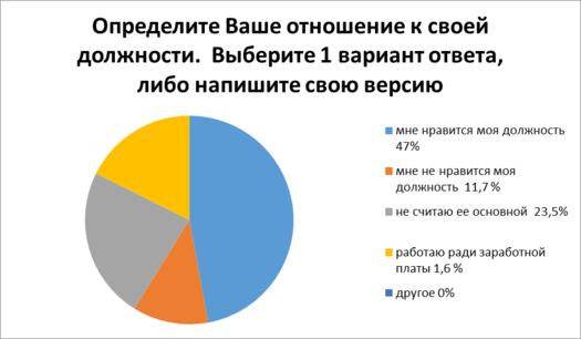 На вопрос «Определите Ваше отношение к своей должности» респонденты дали следующие ответы: