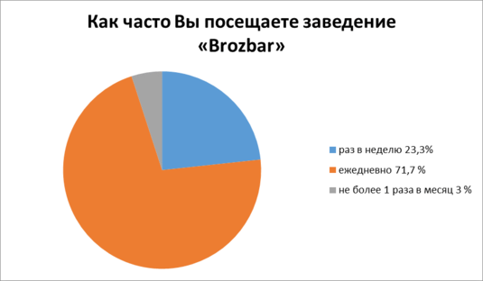 На вопрос «Как часто Вы посещаете заведение «Brozbar»», респондентам предлагалось выбрать один из предложенных вариантов ответа: