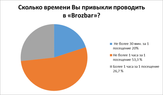 На вопрос «Сколько времени Вы привыкли проводить в «Brozbar»?», респондентам предлагалось выбрать один из предложенных вариантов ответа: