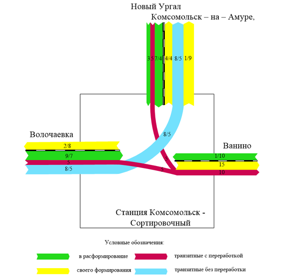 Рис. 2.1. Диаграмма существующих поездопотоков по станции Комсомольск-Сортировочный
