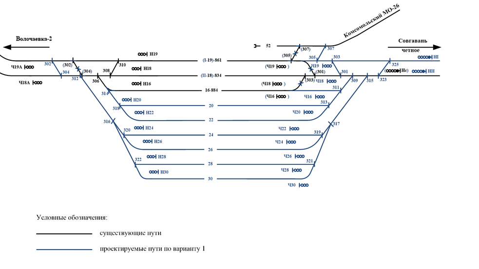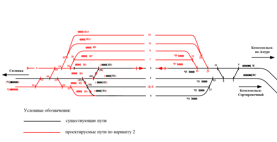 Рис. 4.2. Схема реконструкции разъезда Комсомольск - 2