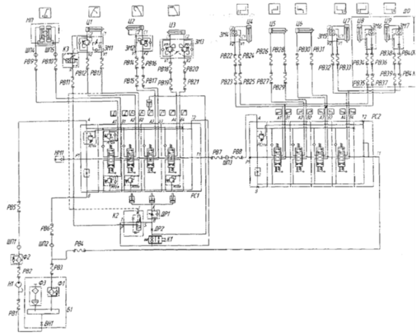 Одним из самых важных элементов КМУ является гидравлическая система, при помощи которой и осуществляются рабочие процессы установки (рисунок 14).