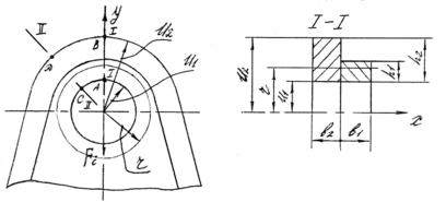 Рисунок 43 – Расчетная схема для расчета проушины на изгиб с растяжением