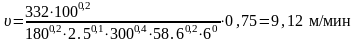 =1 - коэффициент, учитывающий влияние материала инструмента /11/.