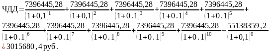 Величина ЧДД при постоянной норме дисконта устанавливается по формуле: