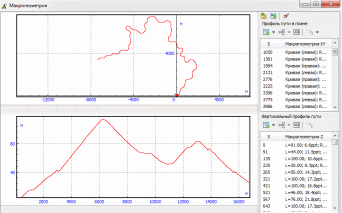 Файл макрогеометрии может содержать любое число кривых, прямых участков, обыкновенных стрелочных переводов, значения коэффициентов трения на отдельных участках, а также произвольно заданный вертикальный профиль.