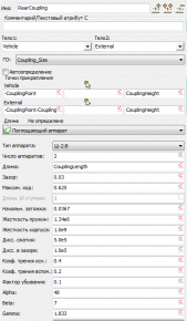 Помимо тяговых характеристик опытной модели экипажа, необходимо реализация биполярной силы, моделирующей межвагонную связь со следующем экипажем – RearCoupling. Так для грузовых вагонов данная биполярная сила (RearCoupling) моделирует автосцепное устройство и два поглощающих аппарата. Параметры биполярной силы модели показаны на рисунке 3.10.