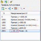 Значения Возвышения слева и справа, смотреть рисунок 4.8, задаются поточечной функцией в зависимости от длины вдоль кривой XY в метрах. Левое и правое возвышения могут быть одновременно отличны от нуля и принимать как положительные, так и отрицательные значения. При необходимости пользователь может найти значения длины вдоль кривой XY в последнем столбце таблицы, выделенном прямоугольником, как показано на рисунке 4.10.