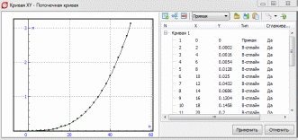 Данный набор точек получен с помощью MS Exсel в виде таблицы, содержащей две колонки. Затем таблица скопирована в буфер обмена и вставлена в редактор кривых. В результате построения получится поточечная кривая, которая показана на рисунке 4.9.