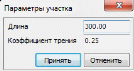 При добавлении Прямого участка откроется окно, которое будет содержать параметры участка (длина и коэффициент трения). Внешний вид окна показан на рисунке 4.5.