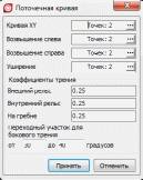 Уширение задается как поточечная функция в зависимости от длины вдоль кривой XY в метрах, а параметры трения используются такие же, как и при добавлении стандартной кривой смотреть на рисунок 4.6. Важно, чтобы пользователь позаботился о непрерывности возвышения и уширения как в пределах поточечно заданной кривой, так и при ее сопряжениях с другими участками.
