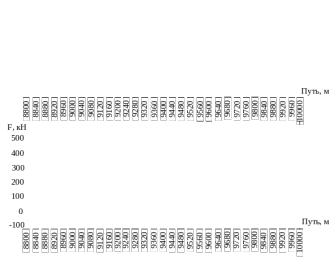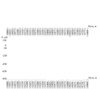 | Участок пути, м | Отрезок пути действия силы, м | Параметры пути | Значение максимальной силы | № вагона | |||||