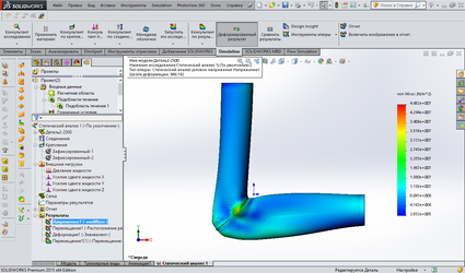 Анализ взаимодействия трубопровода с потоком жидкости в SolidWorks