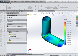 | Рисунок 2.37 – Длина стыкуемых отрезков труб 2000 мм, скорость движения жидкости 20 м/с (деформации) | |