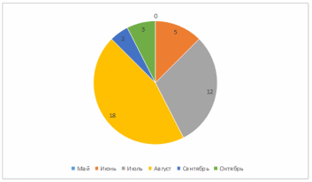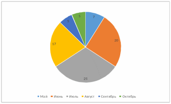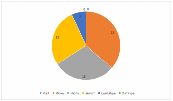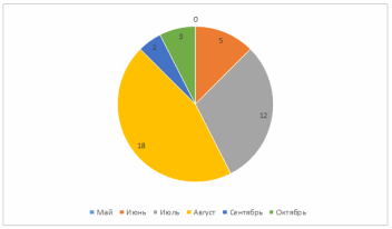 В туристической фирме «РОЗинтур» наибольшее число китайских групп приходится на август, в то время как в турфирмах «ТОР» и «Весь мир путешествий» на июнь, а в турфирме «Заимка» на июль. Турфирмы «Весь мир путешествий» и «Заимка» начинают принимать китайцев с мая, а остальные с июня, при чем турфирма «ТОР» заканчивает работу уже в сентябре.