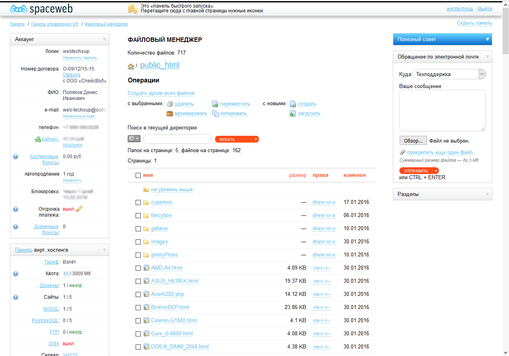 Хостинг–это услуга по предоставлению вычислительных мощностей для размещения информации на сервере, постоянно находящемся в сети (обычно Интернет). Для данного проекта использовался хостинг компании spaceweb (сайт https://sweb.ru/).