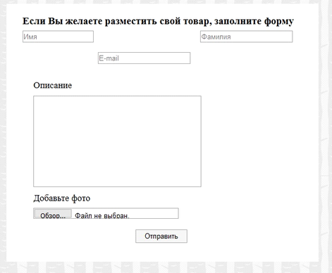 Для пользователей, которые хотели бы разместить свои товары на данном сайте, создана специальная форма обратной связи (рисунок 18).