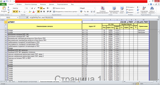 Для того чтобы реализовать правильный и рабочий интерфейс системы диспетчерского контроля и управления, нужно действовать последовательно и сосредоточено, избегая возможных ошибок «по невнимательности». Каждый сигнал, присутствующий в информационном листе для каждого контрольного пункта, имеет свой адрес в контроллере. На рисунке 2.1 представлен фрагмент информационного листа для контрольного пункта №1.