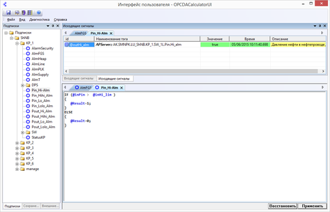 В последствии конфигурация калькулятора связывается с экранными формами по протоколу OPCDA и играет существенную роль в правильном отображении сигналов на мониторе диспетчера.
