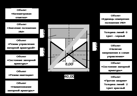 На символе «Запорная арматура» должны отображаться параметры в соответствии с таблицей 2.2.