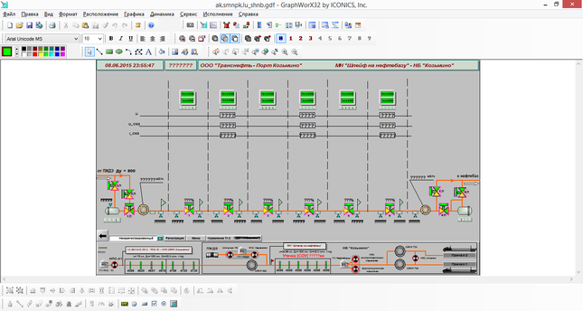 Руководствуясь требованиями, указанными в РД, создадим экранную форму линейного участка «Шлейф на нефтебазу». На рисунке 2.18 представлена экранная форма в режиме разработки.