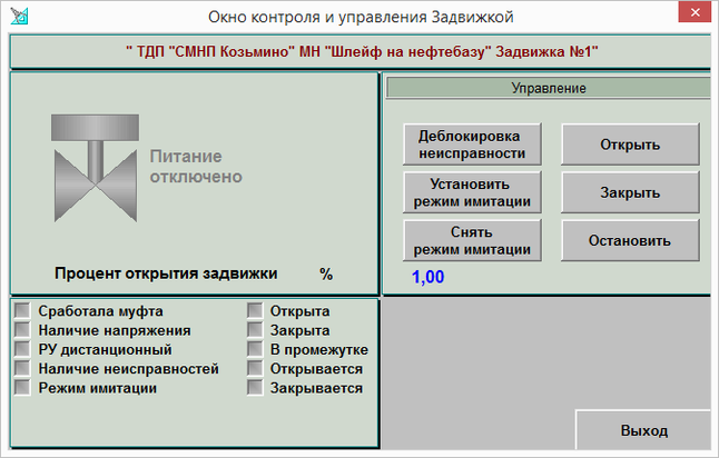 На рисунке 2.21 предоставлено всплывающее окно управления задвижкой.
