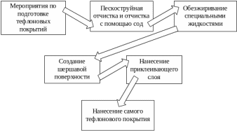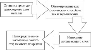 Прежде чем говорить про нанесение тефлонового покрытия на какие-либо металлические изделия важно отметить подготовительные мероприятия, позволяющие качественно производить дальнейший технологический процесс. По причине свой адгезии от основного металла существует несколько основных мероприятий представленных в рис.2.1