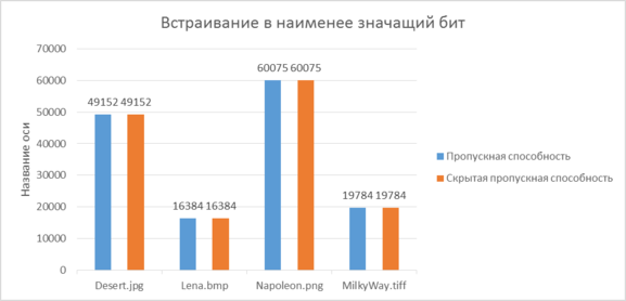 4.2.2.1 Оценки пропускной способности стегосистем, использующих алгоритм LSB
