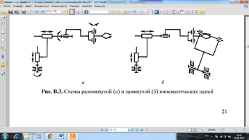 С ис те му з ве нь ев, о бр аз ую щи х к ин ем ат ич ес ки е п ар ы, н аз ыв аю т к ин ем ат ич ес ко й ц еп ью. Е сл и в ц еп и и ме ют ся з ве нь я, в хо дя щи е т ол ьк о в о дн у к ин ем ат ич ес ку ю п ар у, т о ц еп ь н аз ыв аю т н ез ам кн ут ой (р аз ом кн ут ой). В п ро ти вн ом с лу ча е, т. е. е сл и к аж до е з ве но в хо ди т, к ак м ин им ум, в д ве к ин ем ат ич ес ки е п ар ы, ц еп ь с чи та ют з ам кн ут ой. С хе мы к ин ем ат ич ес ки х ц еп ей м ан ип ул ят ор ов, п ок аз ан ны е н а р ис ун ке 2.2, я вл яю тс я н ез ам кн ут ым и. Е сл и ж е о ди н и з н их о бр аб ат ыв ае т п ов ер хн ос ть, р ас по ло же нн ую н а н еп од ви жн ом о сн ов ан ии, т о е го к ин ем ат ич ес ка я с хе ма с ов ме ст но с и нс тр ум ен то м и о бъ ек то м р аб от ы о бр аз уе т з ам кн ут ую к ин ем ат ич ес ку ю ц еп ь. П ри э то м с ле ду ет у чи ты ва ть у сл ов но е н еп од ви жн ое з ве но, к от ор ое з ам ык ае т ц еп ь. Ч ис ло с те пе не й с во бо ды к ин ем ат ич ес ко й ц еп и, н аз ыв ае мо е т ак же е е ч ис ло м с те пе не й п од ви жн ос ти, р ав но