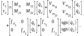 О тм ет им, ч то п ри ве де нн ые у ра вн ен ия д ин ам ик и м ан ип ул ят ор а н е у чи ты ва ют в ли ян ие с ил т яж ес ти в с ил у и сс ле до ва ни я п ло ск ос тн ог о п ер ем ещ ен ия з ве нь ев р об от а.