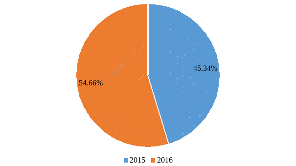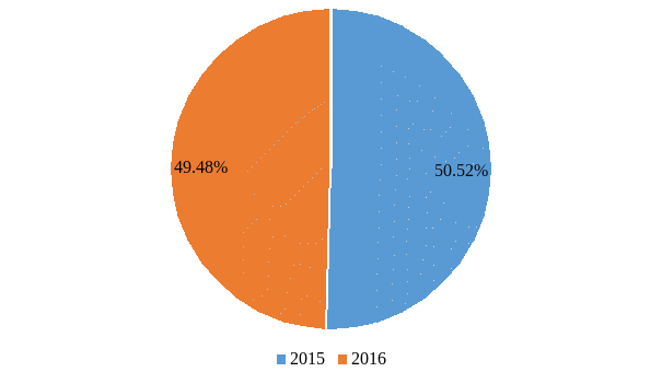 По диаграмме можно сделать вывод, что количество неисправностей, связанных с моторно-осевыми подшипниками в 2015 году почти на 20% меньше чем количество неисправностей в 2016 году.