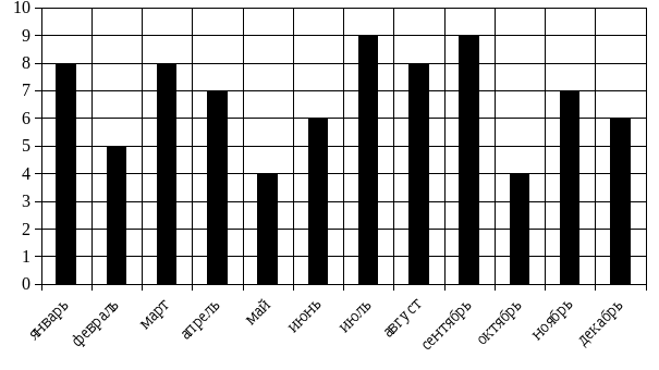 | Месяц | Январь | Февраль | Март | Апрель | Май | Июнь | Июль | Август | Сентябрь | Октябрь | Ноябрь | Декабрь |