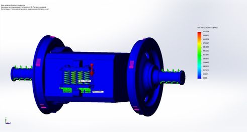 По результатам расчета можно сказать, что максимальное напряжение не превышает предел текучести, стали. В следствие этого факта модернизация выполнена верно. В результате снижения массы – снижается запас прочности конструкции, но также снижается подрессоренная масса тележки.