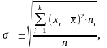 Определим рассеяние исследуемого параметра, как основное среднеквадратичное отклонение, которое определяется по выражению
