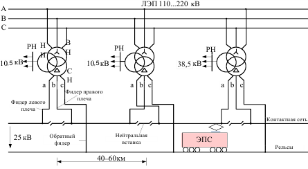 Рисунок 2.5 – Структурная схема системы тягового электроснабжения переменного тока напряжением 25 кВ
