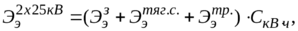 Подобным образом произведем расчет затрат на электроэнергию, при схеме переменного тока по системе 2х25кВ, на тягу поезда по формуле 6.9: