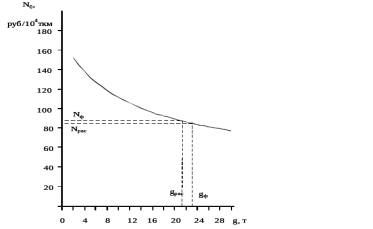 В целом же изменение затрат на расход электроэнергии от изменения осевой нагрузки вагонов в графическом виде будет аналогично графической зависимости Ni =f(g), изображённой на рисунке 8.2.