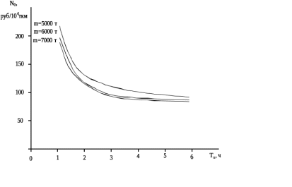 На рисунке 8.1 приведена графическая зависимость N0=f(m,Tх). Аналогично ей будет выглядеть, и зависимость цены нормы расхода электроэнергии от массы поезда и времени хода поезда по участку.