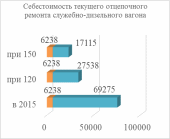 На представленных рисунках видна динамика снижения себестоимости ремонта вагонов за счет снижения накладных расходов, за счет увеличения объемов ремонта вагонов собственности частных компаний.