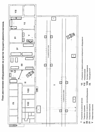 Рисунок 2.2 – План расстановки оборудования на участке текущего ремонта вагонов