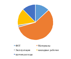 Рисунок 2. 5 – Структура затрат на капитальный ремонт на старогодных материалах участка пути по элементам затрат