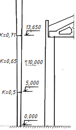 По интерполяции находим ординаты коэффициентов ветровой нагрузки на уровне верха колонны и парапета: