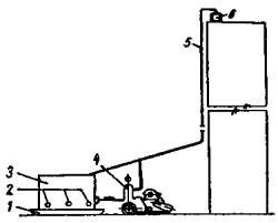 1 - салазки; 2 - ТЭНы; 3 - бункер; 4 - растворонасос; 5 - шланг; 6 - приемный бачок