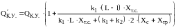 где L – расстояние от поста секционирования до тяговой подстанции, определяемое зоной с ординатой точки минимального напряжения на токоприёмнике электроподвижного состава, км; l – расстояние от ординаты точки минимального напряжения на токоприёмнике электроподвижного состава до ординаты ближайшей тяговой подстанции, км; Xc – входное индуктивное сопротивление системы внешнего электроснабжения тяговой подстанции с ординатой, ближайшей к ординате точки минимального напряжения на токоприёмнике электроподвижного состава, приведённое к напряжению системы тягового электроснабжения, Ом; Xтр - индуктивное сопротивление трансформаторов тяговой подстанции с ординатой, ближайшей к точке минимального напряжения на токоприёмнике электроподвижного состава, приведённое к напряжению системы тягового электроснабжения, Ом; Xт.с. - удельное индуктивное сопротивление тяговой сети одного пути расчётного участка с ординатой точки минимального напряжения на токоприёмнике электроподвижного состава, Ом/км; k1- коэффициент токораспределения присоединения контактной сети поста секционирования, питающего расчётный участок с ординатой точки минимального напряжения на токоприёмнике электроподвижного состава; k2 - коэффициент токораспределения остальных присоединений поста секционирования, питающих участки, до ординаты тяговой подстанции, ближайшей к ординате точки минимального напряжения на токоприёмнике электроподвижного состава.