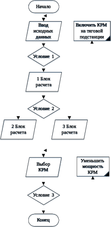 Рисунок 5.1 – Блок-схема. Алгоритм работы в программе «Расчёт показателей для выбора типа и мощности средств поперечной компенсации реактивной мощности по СТО РЖД 07.022.1-2015»